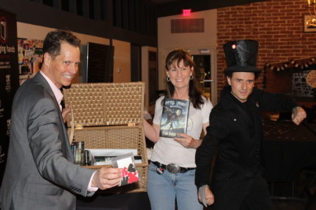 The raffle benefited Kids Need to Read, so we turned around and purchased copies of the treasured Ghost in the H.A.T.B.O.X. novels!