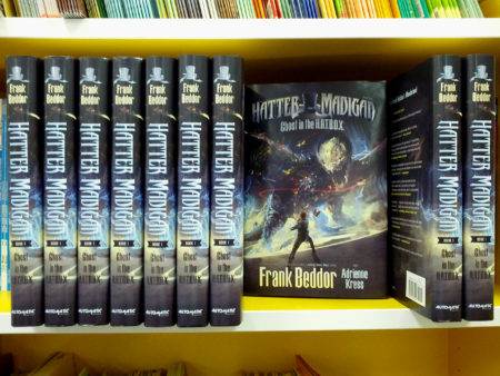 We were also fortunate to receive copies of Hatter Madigan: Ghost in the H.A.T.B.O.X. when author Frank Beddor raffled off a huge Wonder Grate of Looking Glass Wars collectibles at Changing Hands Bookstore in Phoenix during the book’s release a year ago.
