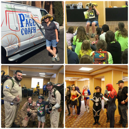 Next up on the trail was a trip to Tucson, Arizona to participate in a reading fair at the Radisson Inn and Suites conducted by Arizona Lions Clubs District 21-B as part of their ongoing Lions Reading Action Program. Kids Need to Read provided free books, Highlights magazines, and Family Reading Tips flyers to participating families. We also provided a well-received reading of The Little Flame. Joining us were the Arizona Avengers, Arizona Ghostbusters, and Justice League of Arizona. The children enjoyed posing for pictures with The Page Coach and the vehicle of S.H.I.E.L.D. Muriel Stevens, Marie Bracki, and the youth of the Tucson Area Leo Clubs organized the event and did such a fantastic job in their efforts to inspire a love of reading in children. Kids Need to Read was honored to contribute.