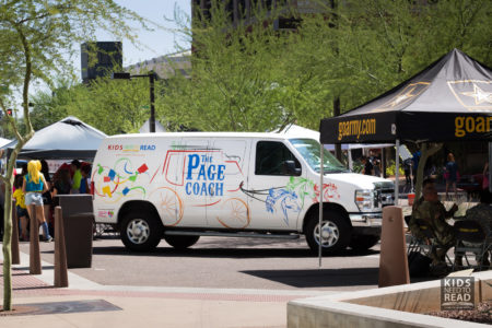 The next Page Stop took a different turn with a “Stuff the Coach” bookfair at Barnes & Noble at Chandler Fashion Square. $290 was raised to purchase books to give to children at our Page Stops. Folks also purchased books inside and brought them to us to help fill The Page Coach. There were also activities for children and many author signings throughout the day. We will have a new Stuff the Coach bookfair during Barnes & Noble Chandler’s 15th anniversary celebration on October 15th! Please come out to support KNTR!